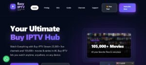Buy IPTV with Easy IPTV: stream 30,000+ live channels and 105,000+ movies & series in HD/4K. Free trial, instant activation & 24/7 support.